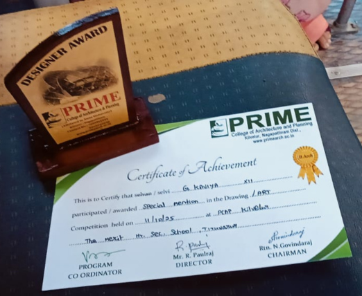 We are pleased to inform that G. Khaviya ( from 12th standard) received a certificate for Best Painting, and all the participants received certificates of Participation.